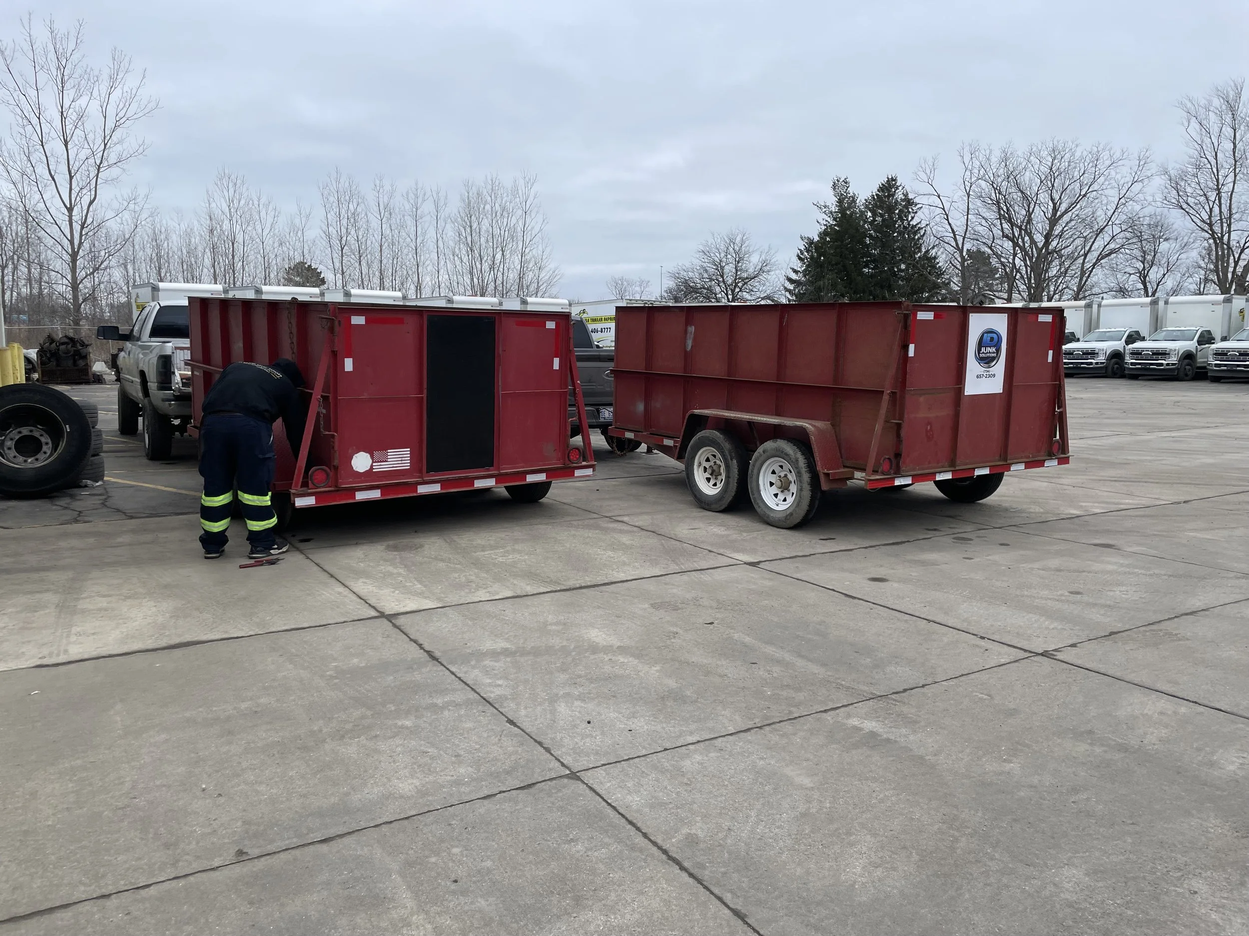 Driveway safe dumpster trailers available for rent